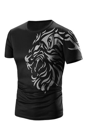 圆领花卉3D打印图案短袖男士T恤